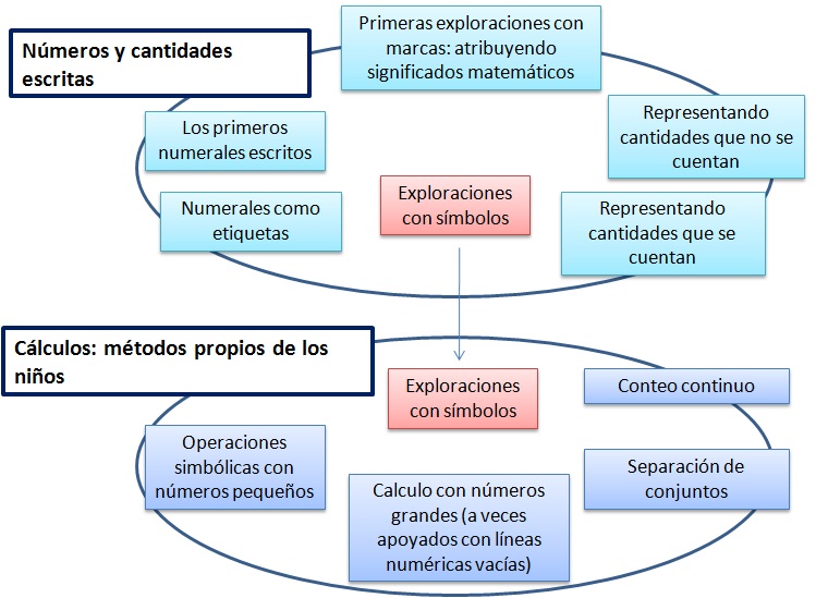Operaciones simbólicas con números pequeños, en este punto los niños ya conocen los símbolos estándar, entendiendo su papel y han desarrollado estrategias para usar de manera flexible para resolver problemas.
