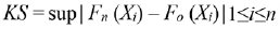 Donde KS es la mayor diferencia absoluta observada entre la frecuencia acumulada observada (Fn) del i-ésimo valor observado en la muestra y la frecuencia acumulada teórica (Fo), obtenida a partir de la distribución de probabilidad que se especifica como hipótesis nula.