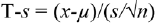 Donde T-s es igual al promedio de la variable x menos el promedio poblacional µ, divididos sobre la desviación estándar de n. Por otro lado, para la prueba de Mann-Whitney, U es igual a los tamaños de muestra ni comparados con las sumas de los rangos de ambas muestras ri: