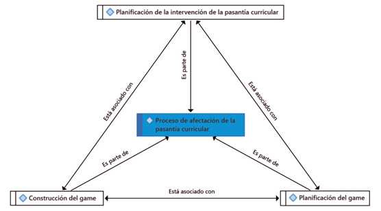 Nota. Elaborado por el autor a partir de los datos de investigación en ATLAS.tiLa figura 3 exige el resultado de la codificación focalizada del corpus en el formato de una red semántica que relaciona los grupos temáticos identificados. Cabe destacar que el desarrollo de la pasantía curricular se vio afectado por tres frentes (de moviliz-)ación) interrelacionados, que incluyeron: 1) el momento de planificar la intervención de los docentes en formación y su práctica docente en el campo de la pasantía; 2) la etapa de planificación del game pedagógico; y 3) la construcción efectiva del game que mediaría la práctica docente de los graduandos/estudiantes de pregrado con estudiantes de bachillerato en el campo de la pasantía curricular.