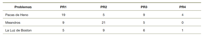 Nota. Archivo de los autores.En la tabla 2 se presenta el número de producciones de los profesores participantes según los procedimientos de resolución (PR1 a PR4) que utilizaron para cada uno de los tres problemas de modelización planteados durante el submódulo correspondiente.
