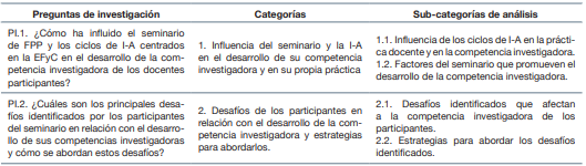 PI.1. ¿Cómo ha influido el seminario de FPP y los ciclos de I-A centrados en la EFyC en el desarrollo de la competencia investigadora de los docentes participantes?