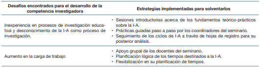 Desafíos encontrados para el desarrollo de la competencia investigadora y estrategias implementadas para solventarlos