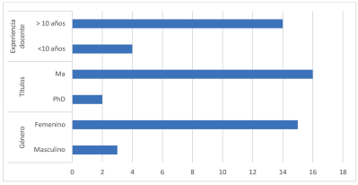 Se elaboró un plan específico para responder a las preguntas. Estas muestras fueron encuestadas entre 18 miembros de la facultad, incluyendo el 16,6 % hombres y el 83,3 % mujeres. Las características incluyen: 100 % han completado un programa de maestría, de los cuales 11,1 % han completado un programa de doctorado. En cuanto a la experiencia docente, el 22,2 % del profesorado tiene menos de diez años de experiencia educativa, mientras que el 77,7 % tiene más de diez años.