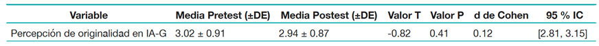 Comparación Pretest-Postest sobre Percepción de Originalidad en IA-G