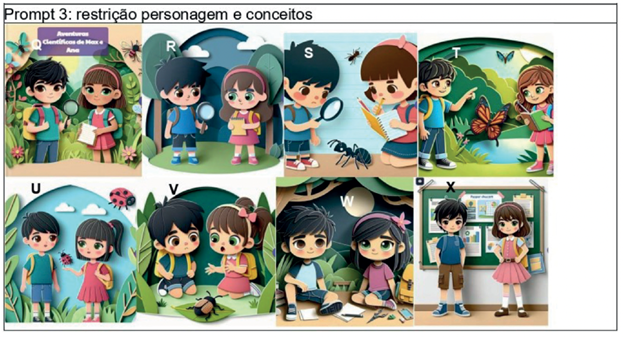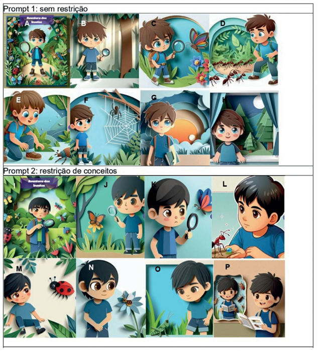 Abstract: GenIA is increasingly present in our lives, and in this way also in education, being used in school environments and even by children, in the construction of children's literature. This article aims to examine the use of GenIA in the production of children's literature linked to Science. Using an exploratory qualitative methodology, six narratives generated by two AI applications (Story Spark and Gamma) for storytelling were investigated. The stories were of the adventure genre, involving scientific activities related to insects and followed the same three elaborated prompts. Content Analysis was followed to analyze the text and images. The results showed that GenIA used to create the stories was not able to construct narratives free of stereotypes or conceptual errors. The Chatbots did not present gender equity in their entirety, and when there was partiality, the attributions to the characters remained fixed, giving the male character a more exploratory role and the female character an assistant role in the scientific activities. Some stereotypes of scientists were reinforced by the male protagonism and the need to be intelligent, and even by the use of glasses in nature exploration activities in the images. The results indicate that teachers and parents need to be careful when guiding the use of GenIA for children.