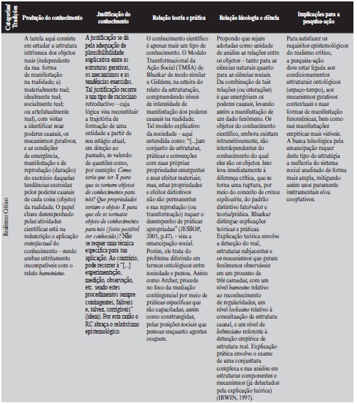 O que se propõe aqui é uma discussão das categorias propostas por Oquist118 à luz do realismo crítico, complementando então o quadro originalmente proposto por aquele autor. Para tanto, exploraremos a seguir algumas características chave do realismo crítico, de forma a embasar, uma leitura realista crítica da PA.