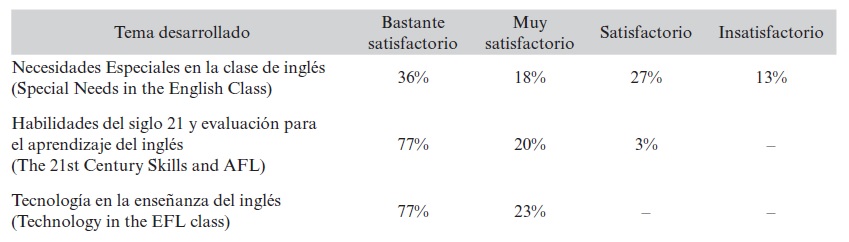 El espacio que propicia el seminario de profesionales se convierte no solo en una oportunidad de crecimiento profesional, sino en una ventana para socializar con otros colegas, quienes trabajan en otras latitudes y bajo otras condiciones; lo cual permite conocer la realidad del contexto nacional en lo que se refiere a la enseñanza y aprendizaje del idioma inglés.