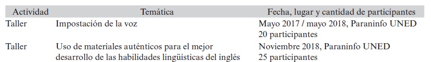 Con el fin de impactar más población docente en relación con el desarrollo profesional, la carrera, en conjunto con las cátedras de Lengua Inglesa, Lengua y Cultura Inglesa, Enseñanza del Inglés e Inglés Técnico, en el 2017 hizo su primer seminario de desarrollo profesional. Este tuvo lugar en el Paraninfo Daniel Oduber y contó con la participación de 50 personas entre graduados, profesores tutores y estudiantes avanzados de la carrera de Enseñanza del Inglés de la UNED.