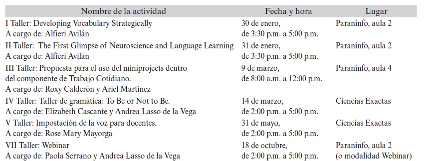 Palabras clave: Desarrollo profesional, seminarios, talleres, crecimiento, actualización.