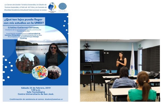 It was an honor to be invited to share this experience with the students from the Sustainable Tourism Management at UNED on Saturday, February 23rd, 2019. Hopefully, this talk inspired other students to follow their dreams, work hard, and take advantage of the opportunities available at UNED. The same day, there was also an interview with the School of Human Studies and Science. The video explains briefly what design thinking is and shows the process for this internship in Finland to come true. The link to check this video out is: