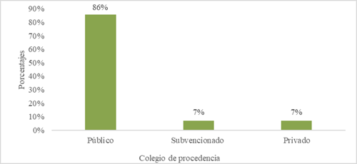 Elaboración propiaSe identifica que, la mayoría del estudiantado del primer nivel proviene de colegios públicos, solo un 7 % proviene de colegios privados y subvencionados (Figura 10).