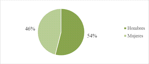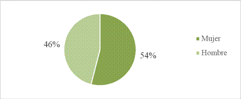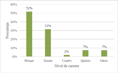 Elaboración propiaEl género predominante en el primer nivel de la carrera corresponde al 54 % de las mujeres, mientras que en el resto de los niveles corresponde al mismo porcentaje, pero en hombres (Figuras 4 y 5).