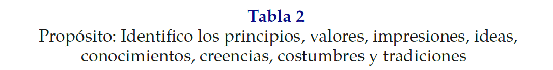 Propósito: Identifico los principios, valores, impresiones, ideas, conocimientos, creencias, costumbres y tradiciones