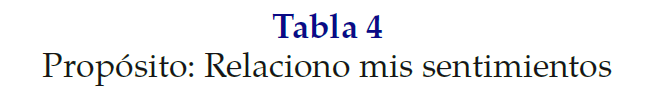 Fuente: Elaboración propia a partir de la entrevista y autobiografía, 2023.De acuerdo con la Tabla 4, los sentimientos de las tres adolescentes se enfocan en sus relaciones de pareja, identifican aspectos como la autovaloración, con percepciones positivas de sí mismas y visualiza un futuro desafiante, pero con posibilidades de logro, donde se retoman las metas a futuro a través del trabajo, estudio, independencia y apoyo familiar.