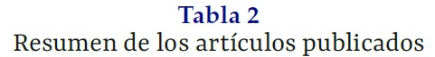 En la siguiente sección se detallan los artículos publicados y se presenta un cuadro de sistematización resultado del análisis de contenido.