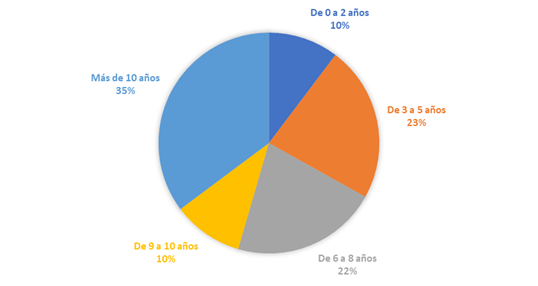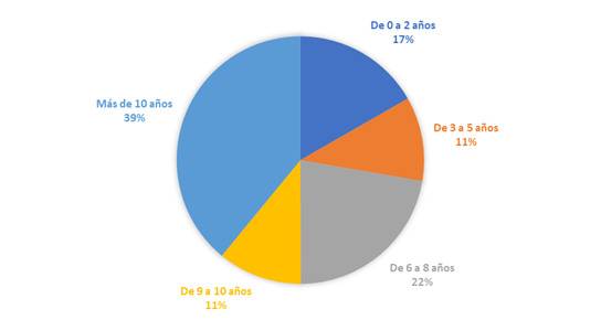 En cuanto a la antigüedad de estas iniciativas, los datos recopilados muestran la siguiente distribución por rangos de tiempo (Figura 3).