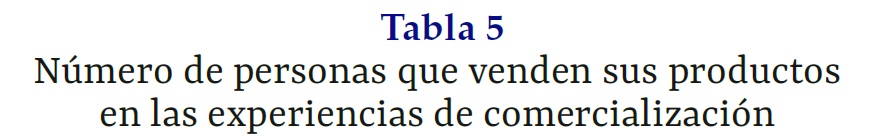 Número de personas que venden sus productos en las experiencias de comercialización