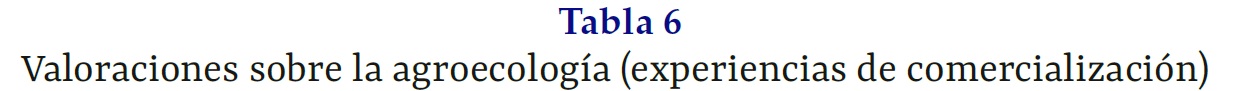 Valoraciones sobre la agroecología (experiencias de comercialización)