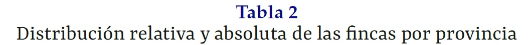 Distribución relativa y absoluta de las fincas por provincia