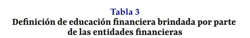 Definición de educación financiera brindada por parte de las entidades financieras