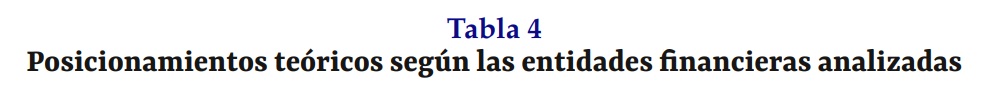 Posicionamientos teóricos según las entidades financieras analizadas