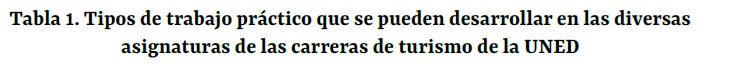 Tipos de trabajo práctico que se pueden desarrollar en las diversas asignaturas de las carreras de turismo de la UNED