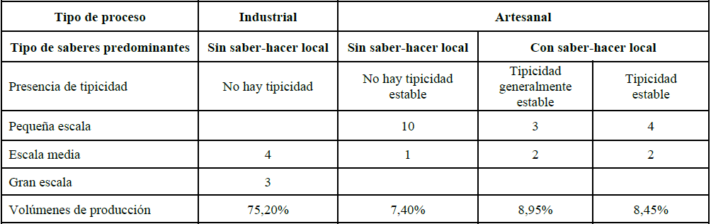 La combinación de los resultados de los talleres de evaluación sensorial con estudios de caracterización de las unidades de elaboración y sus prácticas de producción permitió plasmar el siguiente cuadro.