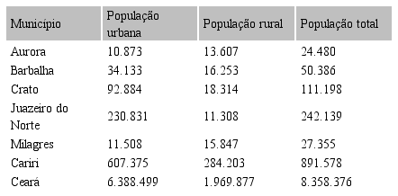 A princípio, esclarecemos que o espaço geográfico foi a região do Cariri, localizada na chapada do Araripe, ao sul do Ceará, nos municípios do Crato, Juazeiro do Norte, Barbalha, Aurora e Milagres, dada a facilidade de acesso aos informantes.