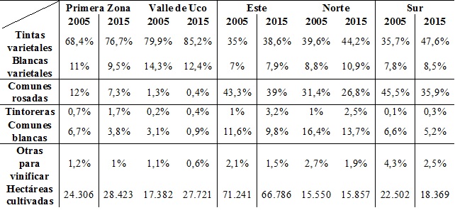 Vides de menores rendimientos, amplitud térmica, concentración de sabores y aromas que posibiliten vinos complejos, en algunos casos con aptitudes para la guarda, llevó a una rejerarquización de los territorios en la vitivinicultura mendocina. Mientras los oasis Este y Norte quedan vinculados a los segmentos genéricos de vinos y a la fabricación de jugo concentrado de uva, la Primera Zona y sobre todo el Valle de Uco pasan a ganar dinamismo debido a su inserción como productores-elaboradores de vinos varietales.