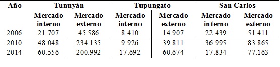 En concordancia con las características de los vinos que el territorio permite obtener, el Valle de Uco adquiriere un perfil predominantemente exportador (Tabla 9), lo que se observa en la creciente incidencia del mercado externo como destino de los vinos fraccionados en el oasis. En particular, han aumentado los vinos fraccionados de alta calidad.