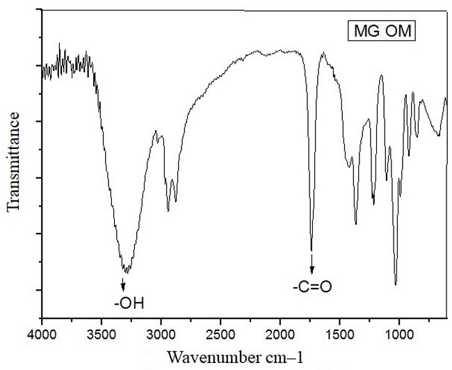Figure 5 shows the FTIR spectrum for the monoacylglycerol obtained from castor oil. The main absorption bands and their functional groups are highlighted.