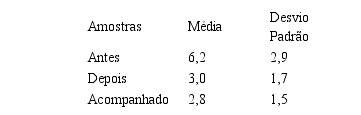 Com a aplicação do teste de Kruskal-Wallis, constatou-se que as amostras são significativamente diferentes, com p = 0,0034 (considerando α 0,05). A comparação múltipla de Nemenyi apresentou a formação de dois grupos distintos: o primeiro grupo (Antes) segregou a amostra com maior massa. No segundo grupo foram consideradas conjuntamente as duas amostras de menores massas (Depois e Acompanhado) e também consideradas semelhantes entre si, pelo teste estatístico descrito e pela comparação múltipla (Figura 3).