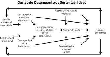 Acredita-se que em uma empresa uma gestão bem-sucedida quanto ao desempenho sustentável é alcançada apenas se a gestão ambiental e a gestão social estiverem em linha com o aumento da competitividade e desempenho econômico (Figura 1). Como consequência, a gestão da sustentabilidade requer uma integração dos aspectos ambiental, social e econômico, cobrindo assim todas as ligações entre as questões econômicas e as que não são de mercado (Wagner & Schaltegger, 2003). Wagner e Schaltegger (2003) afirmam que investimentos em atuação sustentável podem gerar vantagens competitivas de mercado e aumentar o sucesso das empresas no seu setor, o que se pode caracterizar como a estratégia de diferenciação conforme proposto por Porter (1986). O foco da estratégia é posicionar-se de forma exclusiva e valiosa, realizando atividades diferentes dos concorrentes. Assim, a competitividade sustentável refere-se ao desempenho econômico influenciado por estratégias da empresa baseadas numa gestão sustentável (Wagner & Schaltegger, 2003; Schaltegger & Wagner, 2006).