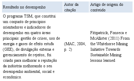 No artigo que investiga a mudança de abordagens para o desenvolvimento sustentável realizada pela Associação de Mineração do Canadá (MAC), uma vantagem para a organização aderir ao programa TSM, que é citada por Fitzpatrick, Fonseca e McAllister (2011) é a da reputação da indústria. Essa é uma vantagem que pode ser aplicada em vários ramos do mercado, principalmente naqueles que tenham atividades que sejam consideradas agressivas para o meio ambiente, como, por exemplo, o varejo de comercialização de combustíveis fósseis.