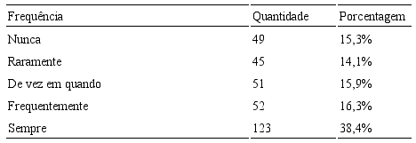 Para a análise dos dados coletados, utilizaram-se os testes estatísticos paramétricos t de Student para verificar diferenças médias intergrupais e o teste qui-quadrado para verificação da associação entre variáveis nominais, ambos a um nível de significância de 0,05. Para identificar a frequência de uso da bicicleta foi utilizada uma escala Likert de 1 a 5, onde 1 representa “nunca uso a bicicleta para ir ao trabalho” e 5 “sempre uso a bicicleta para ir ao trabalho”. A maioria dos respondentes declarou que sempre usa a bicicleta (38,4%) para ir ao trabalho. No outro extremo, 29,4% dos participantes responderam que nunca usam ou usam raramente a bicicleta para ir ao trabalho (Tabela 1).