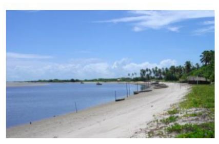 Na foz forma-se uma baía com seis quilômetros de largura quase fechada por uma linha de arrecifes costeiros de formação quaternária [...] A condição de baía protegida pelos arrecifes proporciona águas calmas e tranquilas permanentes. Estas características favorecem a reprodução e criação do peixe-boi marinho, motivo que tornou o estuário tão importante para o ciclo de vida deste mamífero que ocorre ali (Paludo & Klonowski, 1999, p. 14)