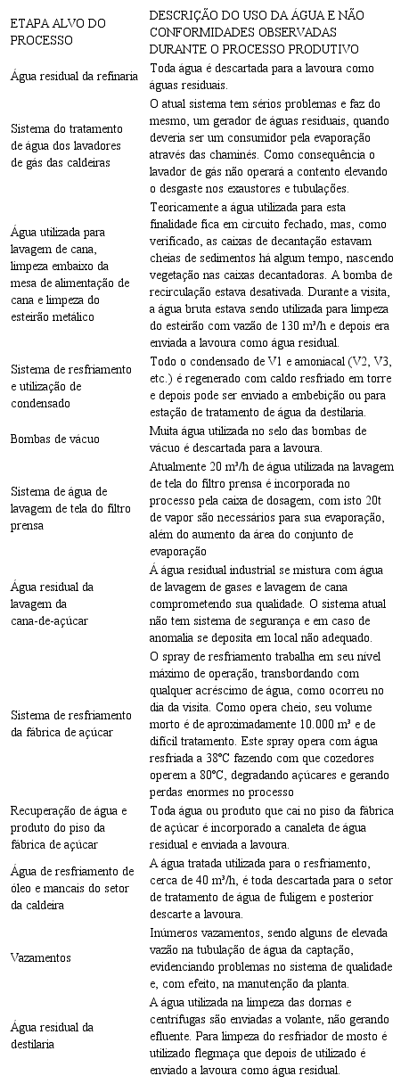 Apesar do estudo detalhado e abrangente, foram identificados grandes processos consumidores de água em que não foi possível melhorar a eficiência da captação de água, devido às condições e localização das instalações, como consta na Tabela 3.