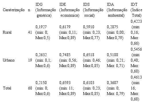 A tabela 4 mostra que, também para todos os índices de divulgação, o grau de divulgação é menor nos municípios rurais do que nos municípios urbanos. Joseph (2010), McElroy et al. (2005) e Williams (2011) verificaram igualmente a existência de mais divulgação nos meios urbanos.