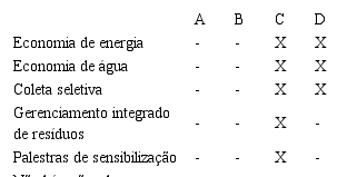 Pode-se ainda comprovar a deficiência na disseminação dos conceitos relacionados às práticas ambientalmente corretas, quando buscou-se investigar a existência de ações de conscientização ambiental nas empresas estudadas. As empresas A e B informaram que não possuem ações de educação ambiental. Por outro lado, as empresas C e D informaram que possuem ações educativas de cunho ambiental, cujos temas estão expressos na Figura 2. Note-se que o único tipo de ação explicitamente presente foram as palestras de sensibilização.