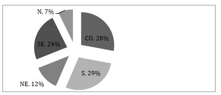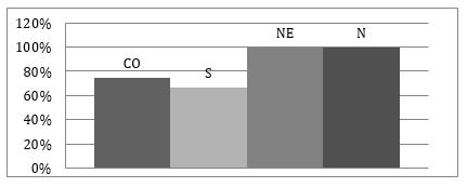 [N=North, NE = Northeast, S= South, CO = Midwest]