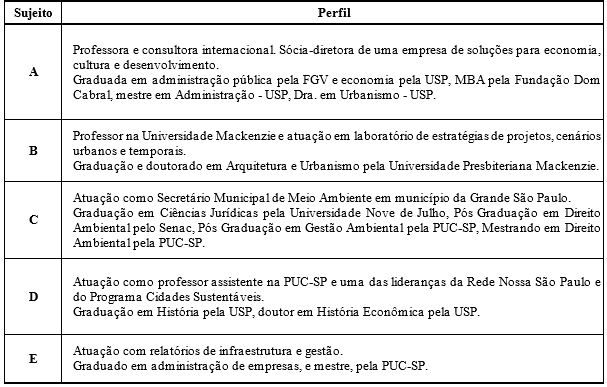 Ressalta-se que todos os sujeitos entrevistados foram escolhidos de maneira intencional, o que reforça a qualidade das respostas e da pesquisa. O tema de planejamento urbano engloba diversas variáveis, o que exigiu uma amostra variada para responder a pergunta de pesquisa, absorvendo diversos pontos de vista sobre a questão. Esta perspectiva multistakeholder garantiu um melhor aproveitamento da pesquisa.