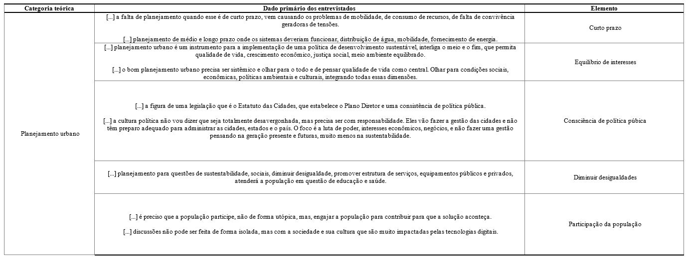 A seguir, a Figura 5 apresenta os dados primários relacionados a Categoria Planejamento Urbano.