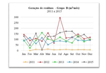 Os volumes mensais de geração dos resíduos do Grupo B são apresentados na Figura 5.