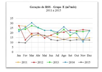 Os volumes mensais de geração de resíduos do grupo E são apresentados na Figura 7.