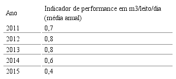 Quanto ao indicador de performance de consumo de água, foram obtidos os valores anuais apresentados na Tabela 2.