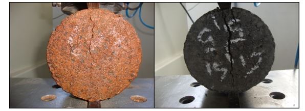 Durante a ruptura das amostras (Figura 5) foi possível perceber que a fissura sempre ocorreu no sentido vertical, o que indica que a deformação crítica é perpendicular ao diâmetro solicitado.