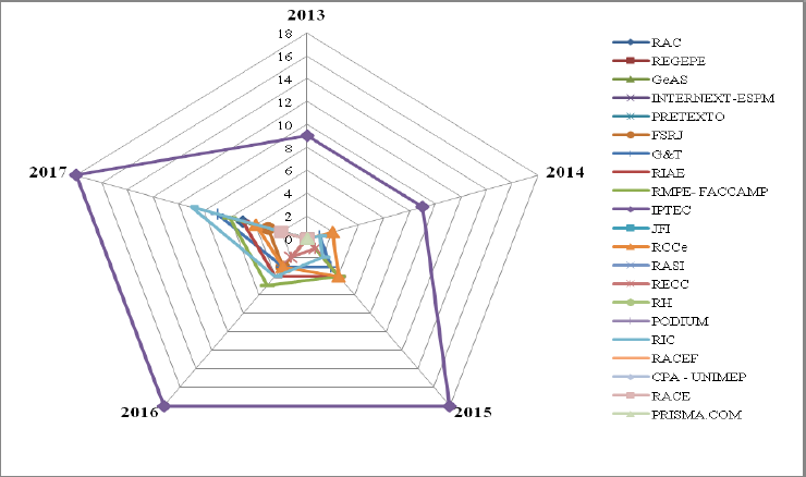 Main results: The total number of productions totaled 159 publications, between the years 2013 and 2017, and in 2015 it was observed that the numbers of publications of technical reports triated, in relation to the year of 2014.