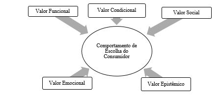 Enquanto que a outra proposição realça que os valores de consumo são independentes (Sheth et al., 1991; Lin & Huang, 2012), visto que a escolha do consumidor pode ser determinada por um valor em específico ou também pode ser determinada por vários valores de forma conjunta.