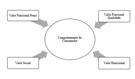 Nesse novo modelo observa-se alguns valores remanescentes da teoria anterior enquanto outros dois valores, o valor epistêmico e o valor condicional, na visão de Sweeney e Soutar (2001) não aparecem mais como aspectos relevantes que influenciam o comportamento do consumidor (Figura 2).